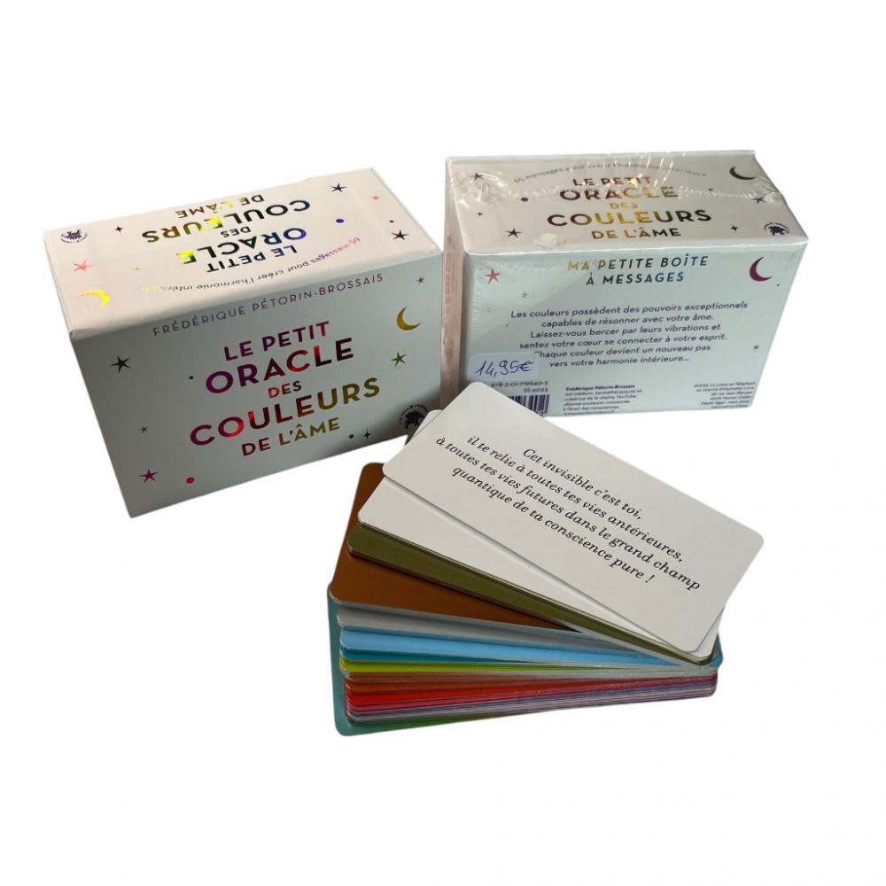 Le petit oracle des couleurs de l’âme est un jeu de cartes qui explore le lien entre les couleurs et nos émotion. Chaque carte représente une couleur spécifique, chacune portant un message symbolique et énergétique qui résonne avec l’âme.