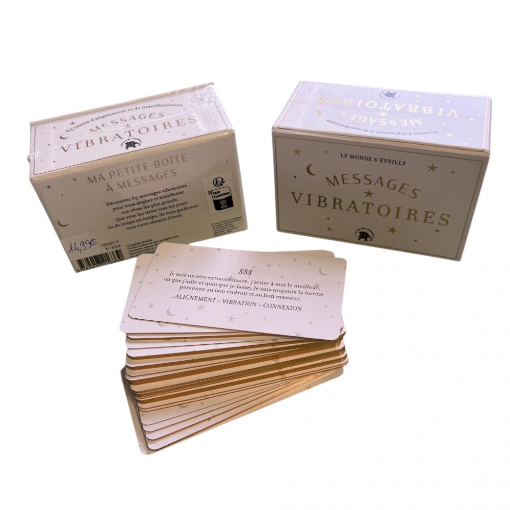 L’Oracle Messages Vibratoires est un jeu de cartes qui utilise l’énergie des vibrations pour offrir des conseils spirituels et émotionnels. Chaque carte contient un message énergétique qui résonne avec les fréquences vibratoires de l’univers et de votre être intérieur, en vous connectant à des vibrations positives et porteuses de transformation.