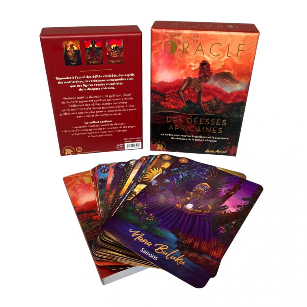 L’Oracle des déesses africaines est un jeu de cartes spirituel qui s’inspire des puissantes figures féminines de la culture africaine. Chaque carte représente une déesse, avec son énergie et ses enseignements, offrant ainsi des messages de sagesse, de protection et de guidance.