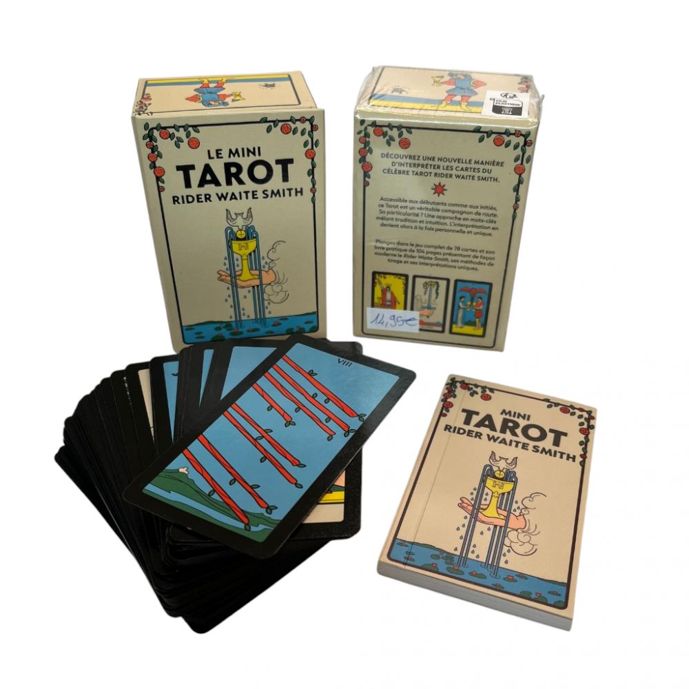 Le Mini Tarot Rider Waite Smith est un coffret conçu pour rendre le célèbre tarot accessible tant aux débutants qu’aux initiés. Il comprend un jeu complet de 78 cartes, illustrées par l’artiste nantais Nicolas Galkowski, qui propose une réinterprétation moderne des images emblématiques de Pamela C. Smith. Accompagnant les cartes, un livret pratique de 104 pages, rédigé par la tarologue et psychopraticienne Margot Robert-Winterhalter, offre des interprétations basées sur des mots-clés, mêlant tradition et intuition pour faciliter une compréhension personnelle des arcanes. Le format compact de ce tarot le rend facilement transportable, permettant de l emporter partout avec soi.