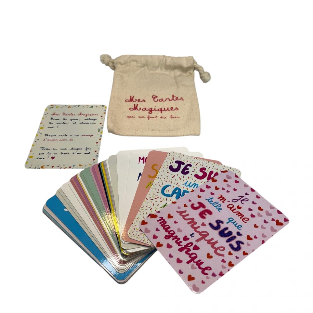 Mes cartes magiques est un jeu de cartes amusant et interactif conçu pour aider les enfants a exprimer leurs émotions, développer leur confiance en soi. À travers des cartes coloré et ludique, chaque joueur apprends a ce détendre, à se concentrer et a renforcer son bien être mental tout en s’amusant.