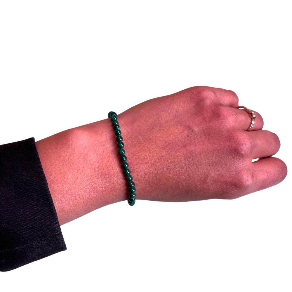 Le bracelet en malachite, avec des perles de 4mm, est une pièce raffinée et énergisante.