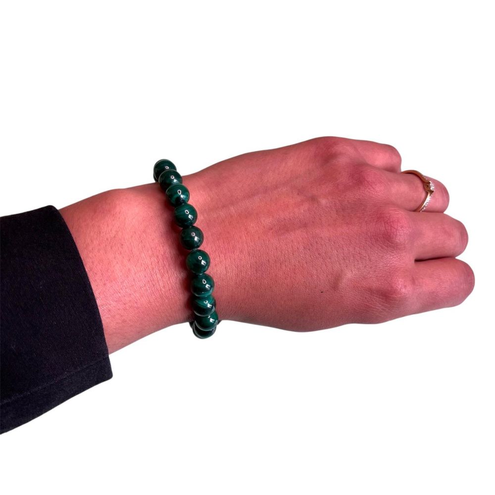 Bracelet boule 8 mm malachite foncé AA – TAILLE 1