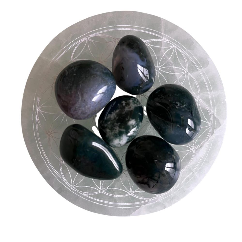 Pierre roulée agate mousse AA 2 x 3 cm +/-0.5 cm (Vendu à l’unité)