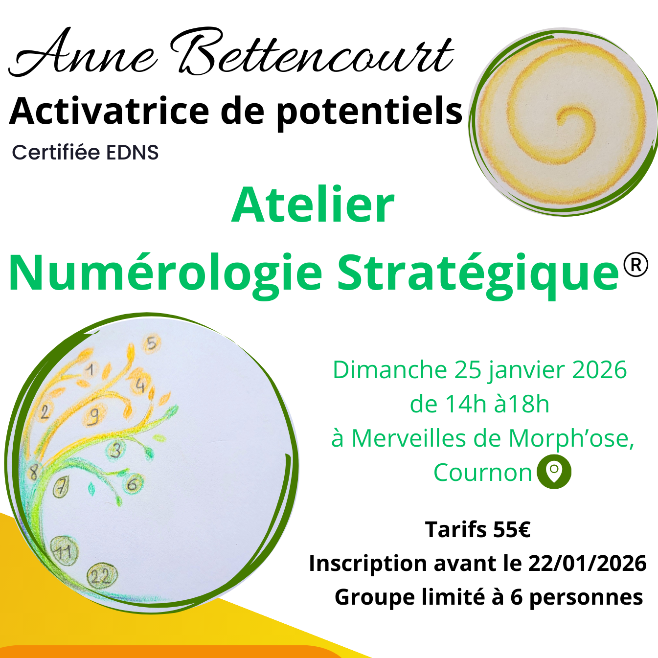 ✨Vous repartirez avec votre arbre personnel (symbolique de la Numérologie Stratégique), des fiches récapitulatives de vos nombres, la connaissance de vos vibrations de l’année 2026, des astuces pour gérer certaines ambivalences des nombres.