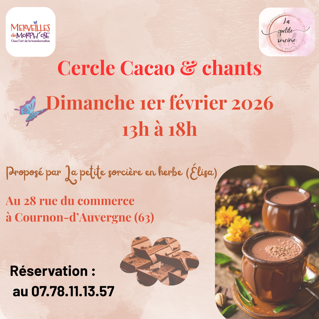 - Cercles et soins individuels Cacao (pour travailler sur l’espace du cœur et les blessures de